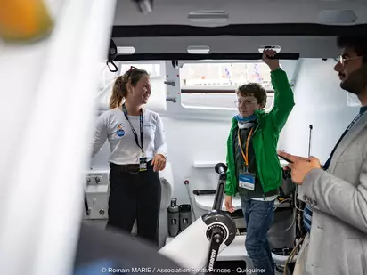 Au programme de cette journée exceptionnelle : visite du bateau, échanges privilégiés, interview d’Élodie et découverte de l’envers du décor de la course.