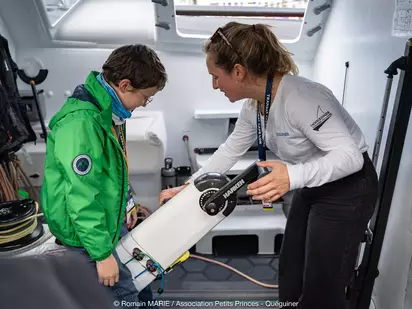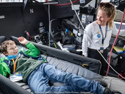 Accompagné de sa famille, d’une bénévole de l’Association Petits Princes et du rédacteur en chef adjoint du magazine, il a embarqué à bord de l’IMOCA Association Petits Princes - Quéguiner aux côtés d’Élodie Bonafous pour une immersion spéciale.